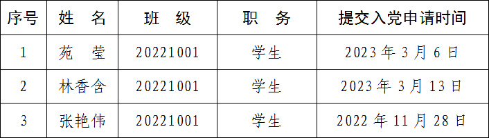 按照发展党员工作有关规定,根据党员推荐和群团组织推优情况,经研究生支部委员会研究,并报学院党委备案,确定苑莹等3名同学为入党积极分子。