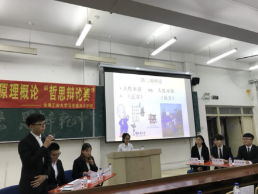 本次“哲思辩论赛”坚持理论教学和实践育人相结合,以马克思主义基本原理概论实践课程为载体,以大二学生为主体,通过原理实践课堂的层层选拔,确定了来自南湖、林园、北湖三个校区不同学院的13名学生参加本次辩论赛活动。“哲思辩论赛”先后进行两场,辩题分别为“应该(不应该)延迟退休”和“人性本善(恶)”。在辩论过程中,辩手们慷慨激昂、条理清晰、语言犀利,充分运用马克思主义哲学基本原理分析问题,据理力争,十分精彩。在自由辩论环节,随着辩手们的辩论不断升级,整个辩论赛达到高潮。
