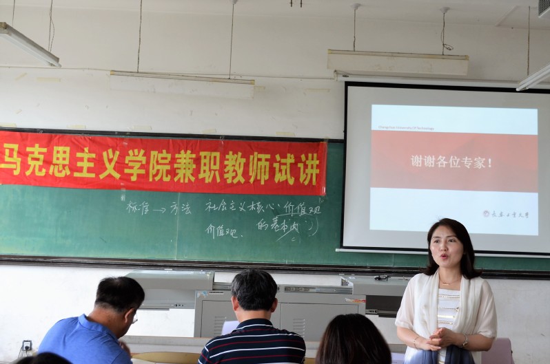 教学副院长张玉琳首先向兼职教师介绍了参与试讲的领导和评委,宣布了试讲顺序和要求,接着五位兼职教师结合相关课程的内容和特点进行了现场教学。五位教师在教学展示过程中,不仅准备充分、逻辑清晰、表述流畅、仪表大方,而且充分展现出各位教师的理论功底和研究专长。
