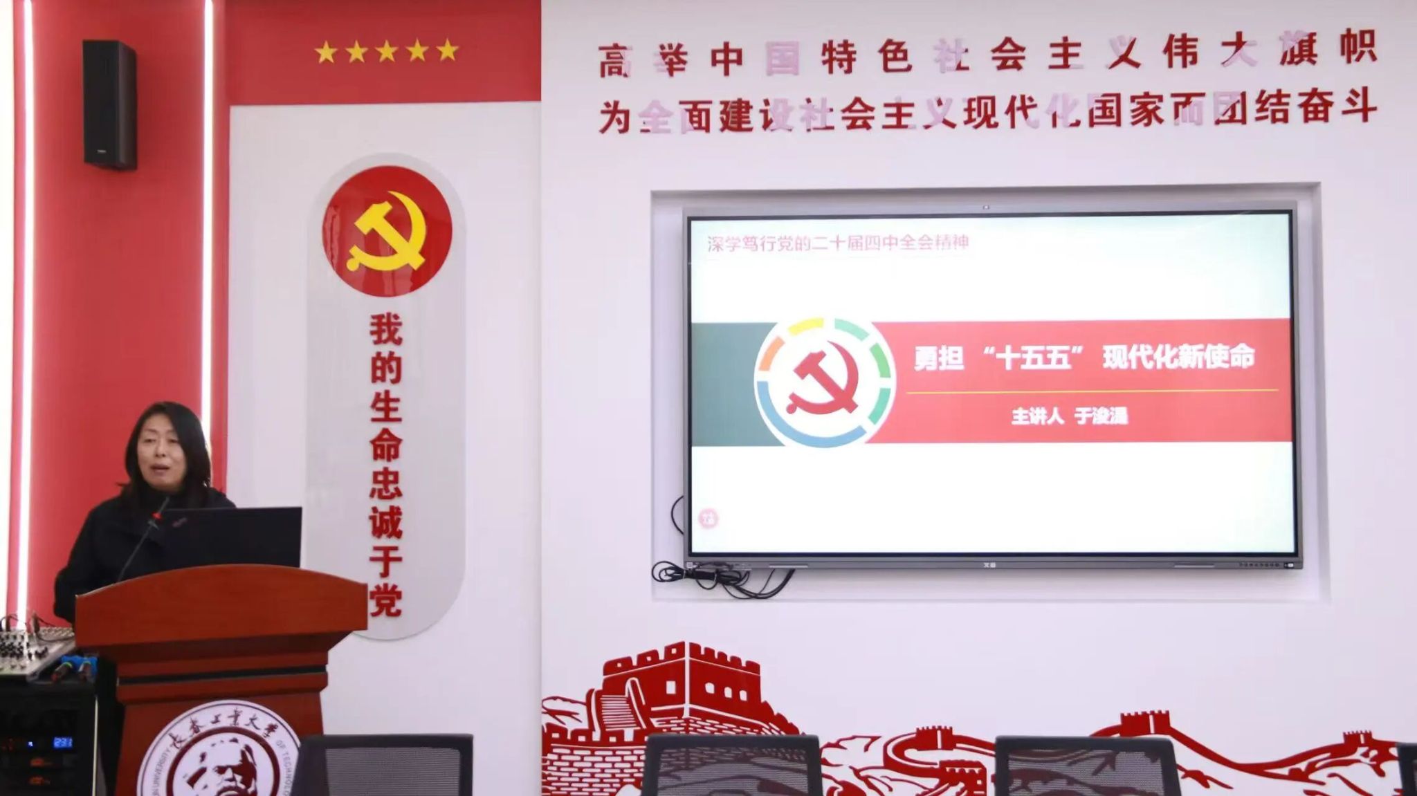 在“理论联学”环节,伟德国际victor·1946源自院长于浚湜以《勇担“十五五”现代化新使命》为题,就全会精神进行了深入解读,为师生带来一堂贯通历史、理论与实践的专题“思政课”。于浚湜从历史的维度厘清了全会承前启后的战略定位与重大意义;从理论的维度系统阐释了《建议》的核心要义与发展蓝图;从发展的维度清晰指明了“十五五”时期的目标任务与战略举措,为师生深刻理解全会精神、自觉担当时代使命奠定了坚实的理论基础。